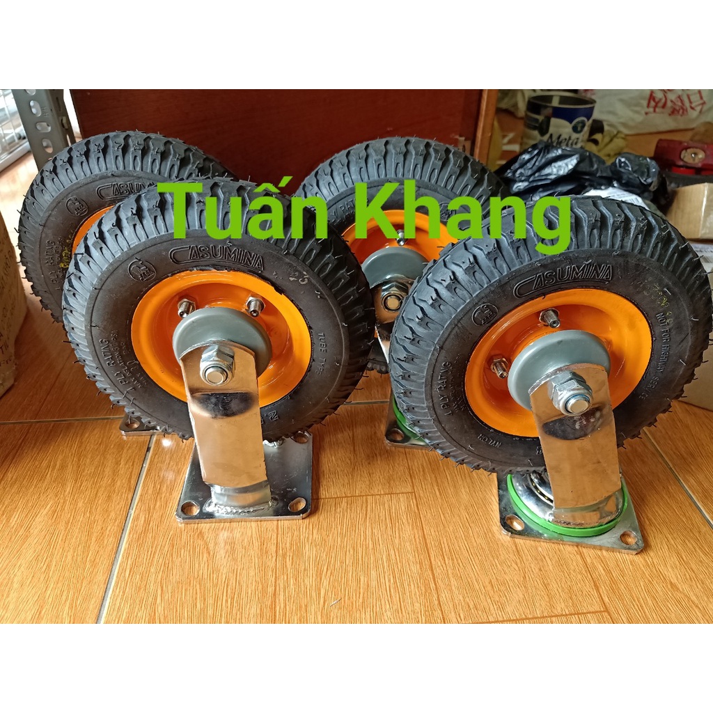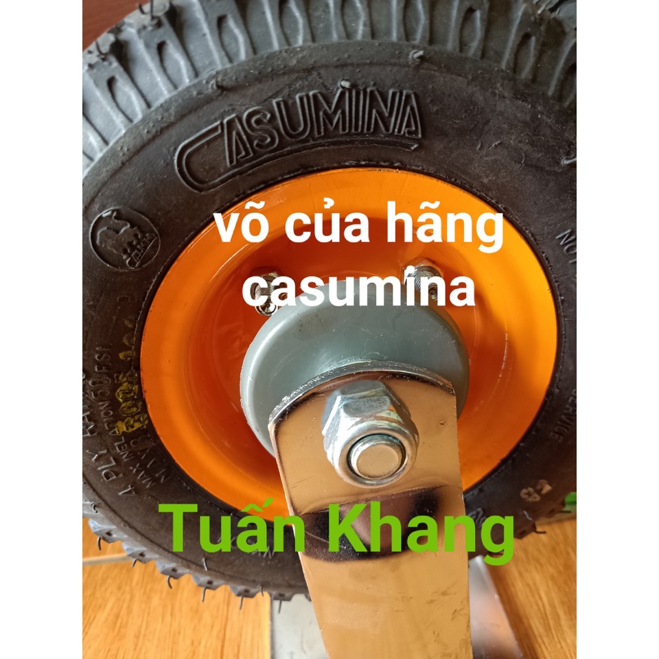 Bánh xe đẩy hàng có hơi 250-4 caosuminavõ bánh xe của hãng casumina , nên chất liệu cao su dai hơn võ thường