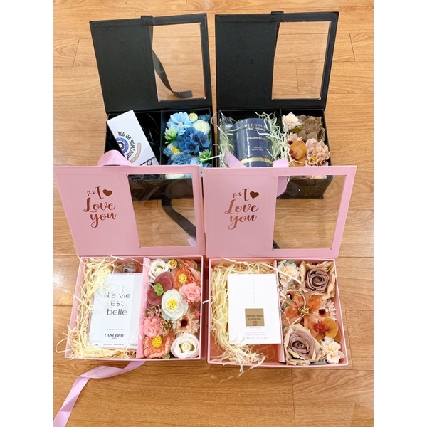 Hộp hoa quà tặng đựng nước hoa, quà sinh nhật kt 20.25