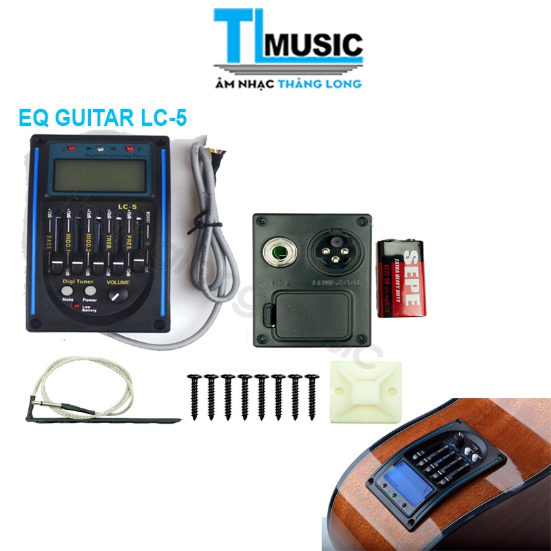 Bộ EQ Guitar LC5 gồm có: EQ, chuôi jack out, ốc vít, thạch anh, dán nẹp dây, dây rút dù, pin (tặng kèm, số lượng giới hạn, bạn nên đặt hàng sớm)