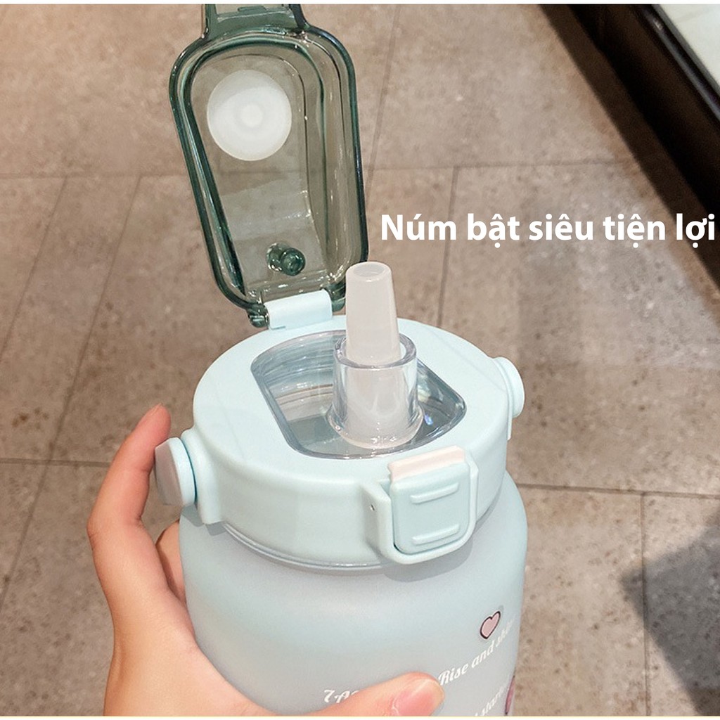 Bình Đựng Nước 2000ml Dễ Thương Có Vạch Báo Giờ Uống Nước Cao Cấp,