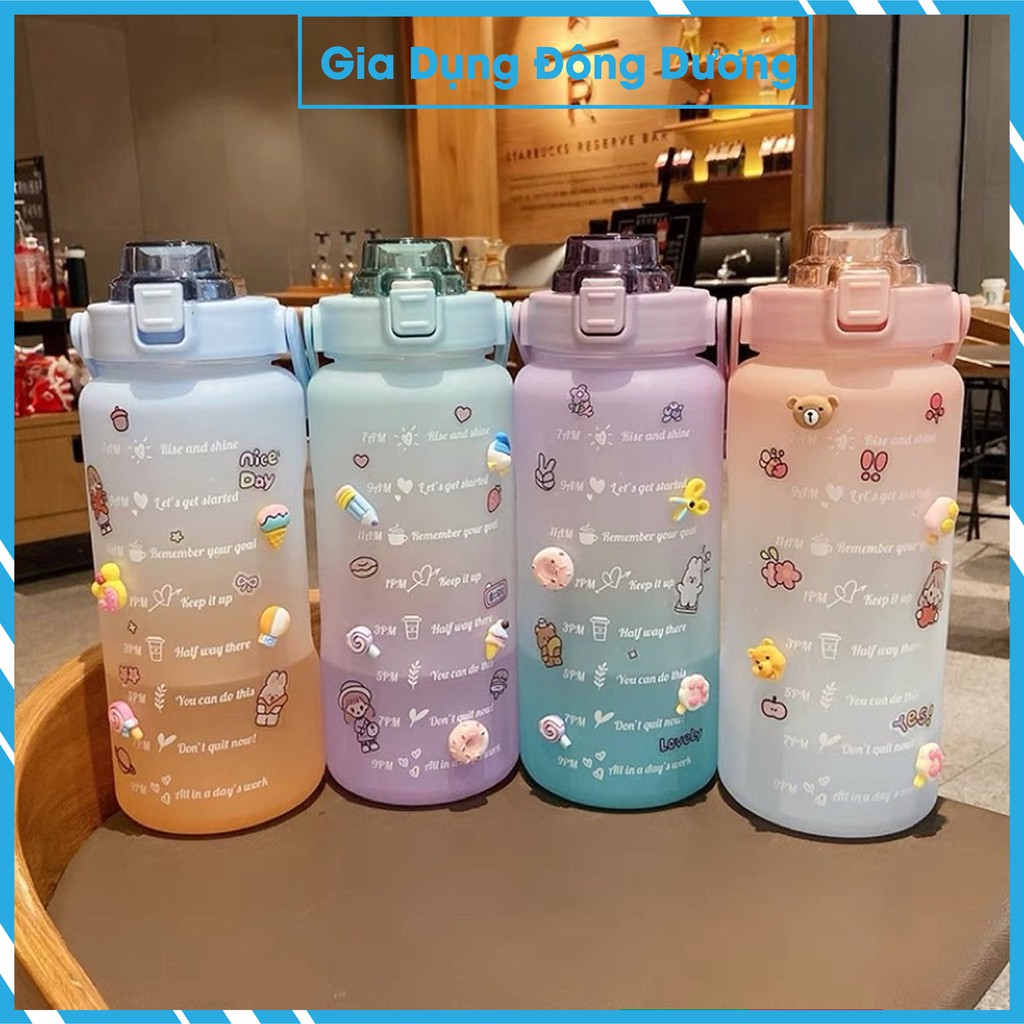 Nhà cửa & Đời sống > Bộ đồ bàn ăn > Bình nước & phụ kiện || Bình Đựng Nước 2000ml Dễ Thương Có Vạch Báo Giờ Uống Nước Cao Cấp,Còn hàng