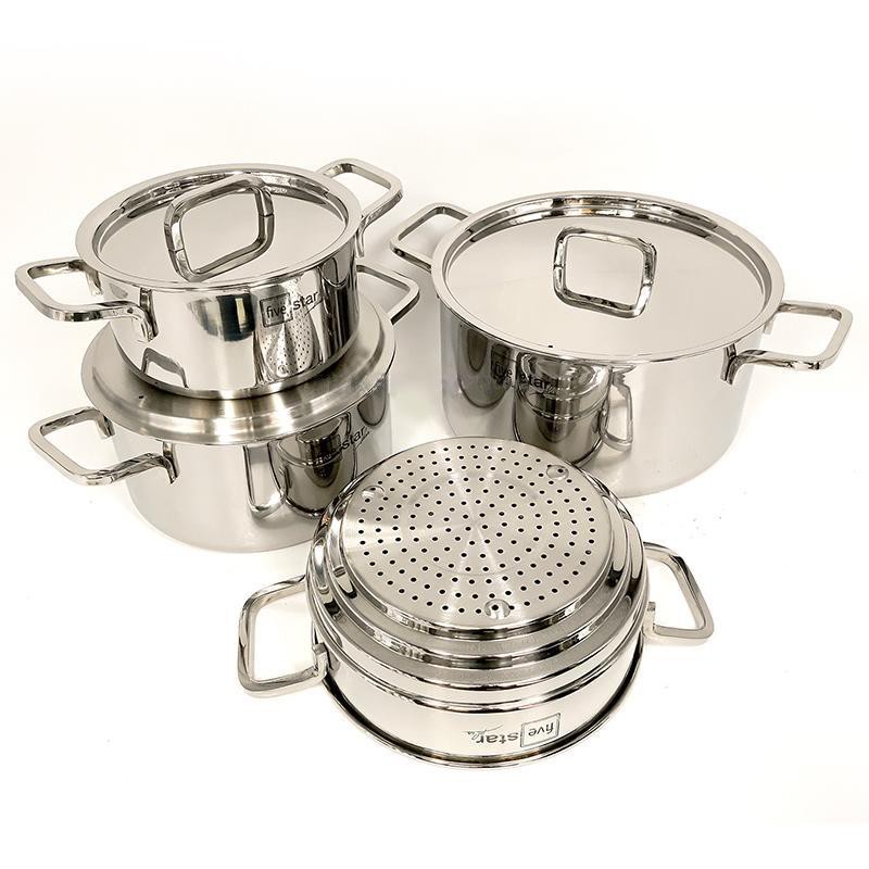 Nhà cửa & Đời sống > Dụng cụ nhà bếp > Nồi || Bộ nồi inox bếp từ cao cấp Fivestar 3 lớp đúc liền inox 304 nắp inox 4 mónCòn hàng