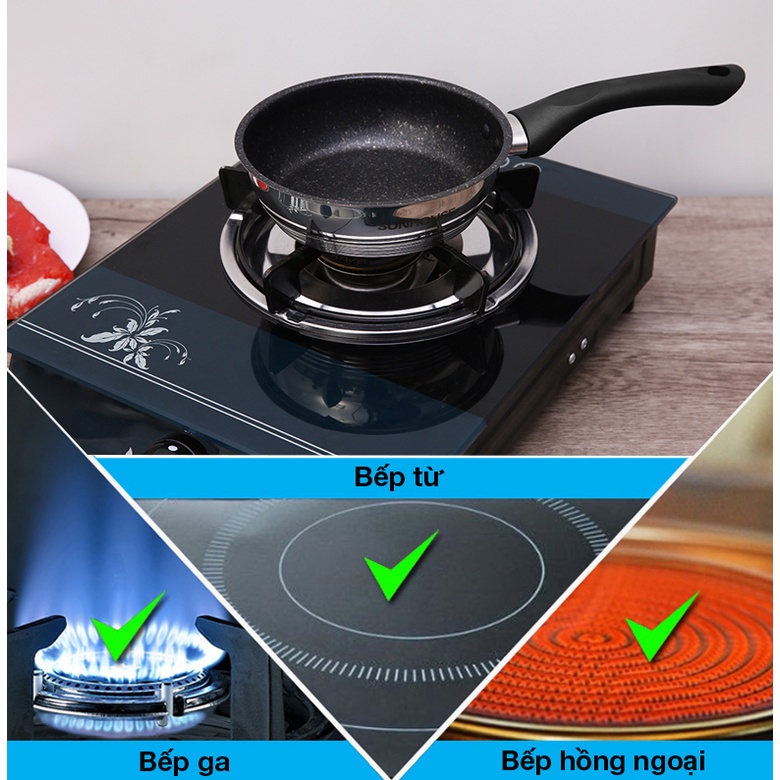 Chảo dùng được với bếp ga, bếp hồng ngoại và bếp từ