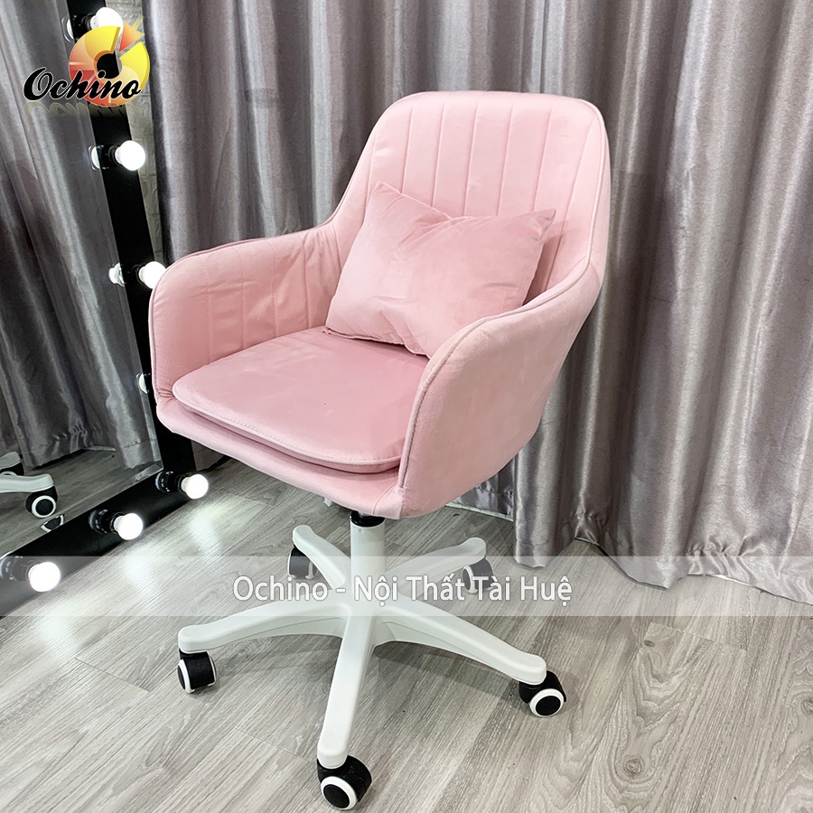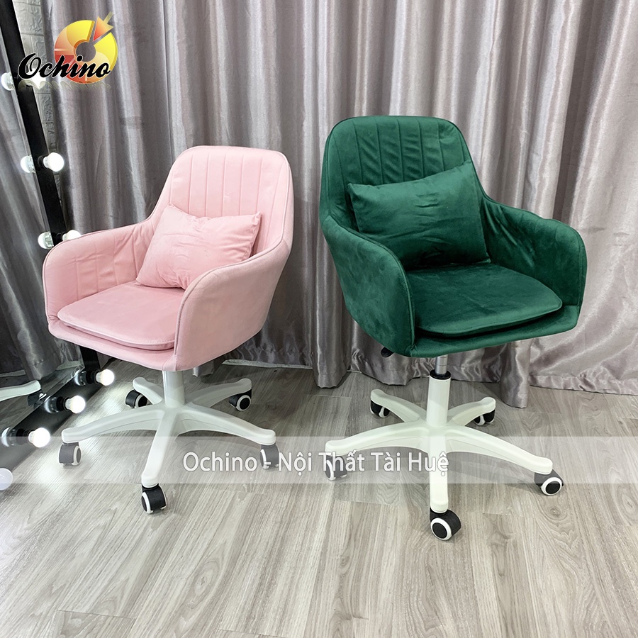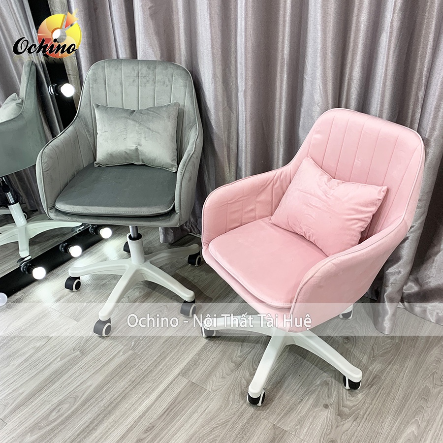 📍Mặt ghế có thể xoay 360 rất tiện dụng. Bọc đẹm dày dặn và êm ái. Chất nỉ tuyết màu tươi mới và sang chảnh, được tặng 1 gối kèm.. đệm nhung tựa tay phù hợp với chiều dài tay cánh tay và tư thế làm việc, chống căng mỏi cơ tay.