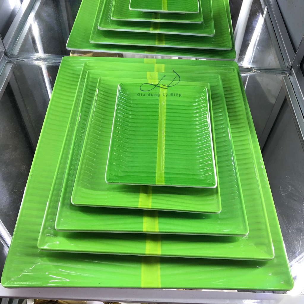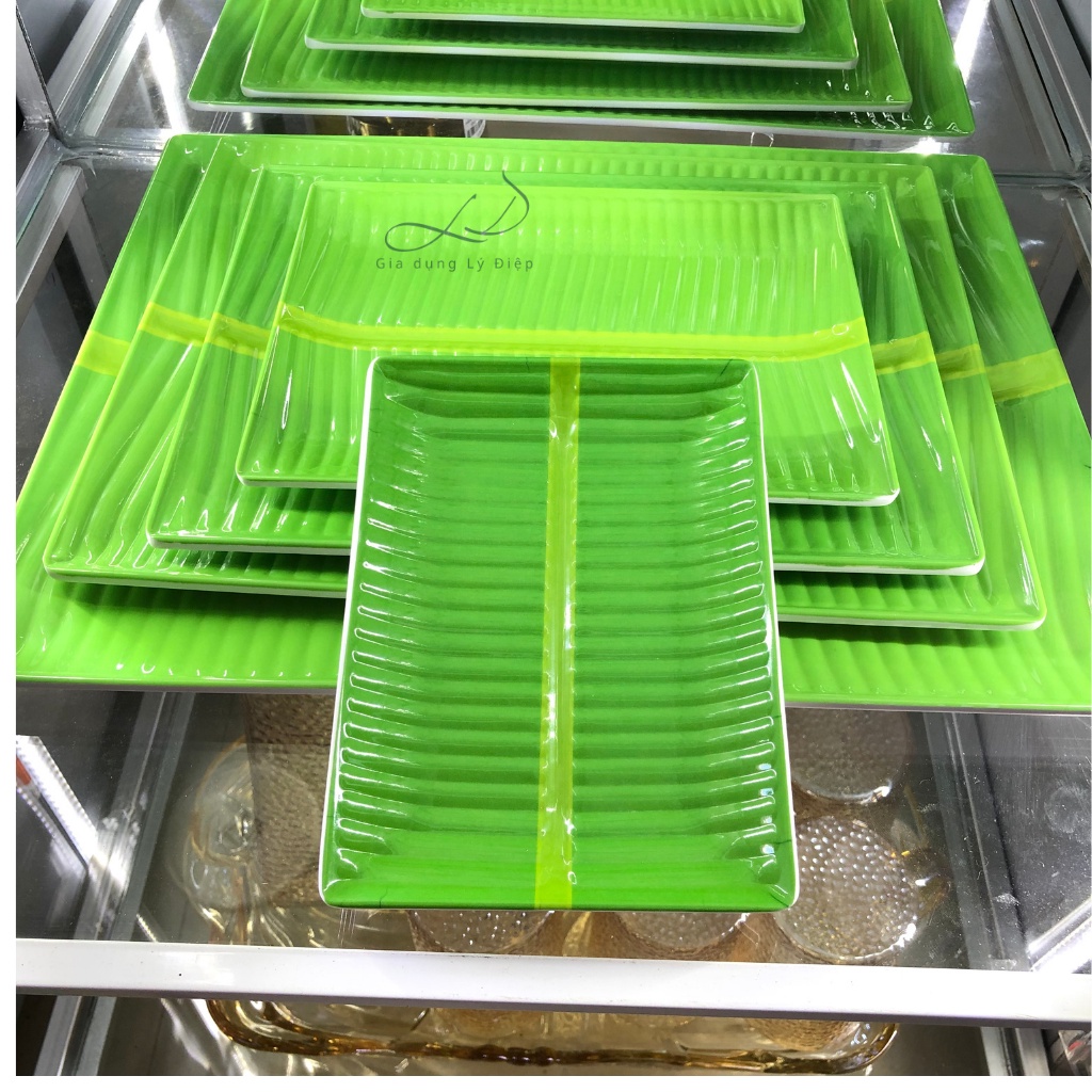 Dĩa nhựa Melanmine lá chuối chữ nhật⚡️GIÁ SỐC⚡️Mẹt đựng bún đậu đồ ăn vặt đủ sim