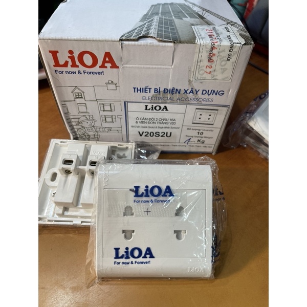 Ổ cắm đôi 2 Chấu 16 A viền đơn trắng Lioa V20S2U được phân phối chính hãng.