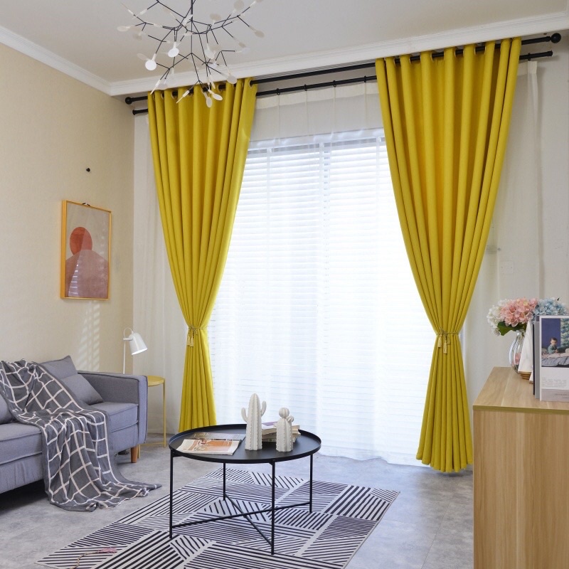 Nhà cửa & Đời sống > Trang trí nhà cửa > Rèm cửa, màn che || Rèm cửa màu vàng chất thô sao băng cản nắng 70%Còn hàng