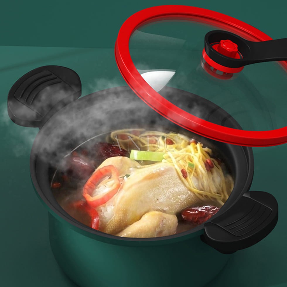 - Thoải mái chế biến mọi món ngon hầm canh, nấu cơm, kho, rán,... cực nhanh chóng. Dễ sử dụng có thể dùng cho cả bếp Gas và bếp điện