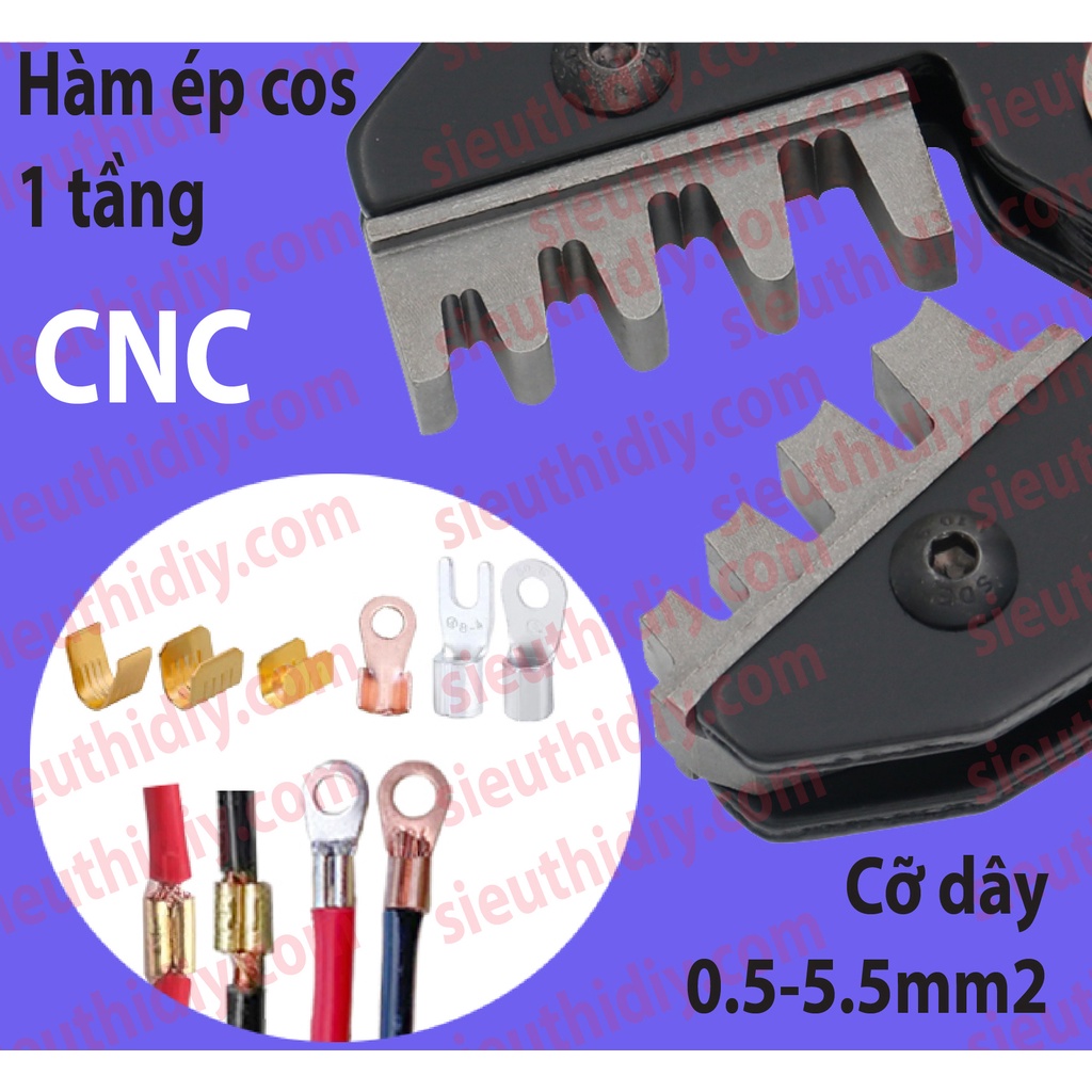 + 1TầngCNC4Lỗ0.5-5.5mm2: chuyên bấm các cos 1 tầng (có thể bấm từng tầng của cos 2 tầng), có 4 lỗ ép cos, hàm sản xuất bằng máy CNC bấm rất đẹp