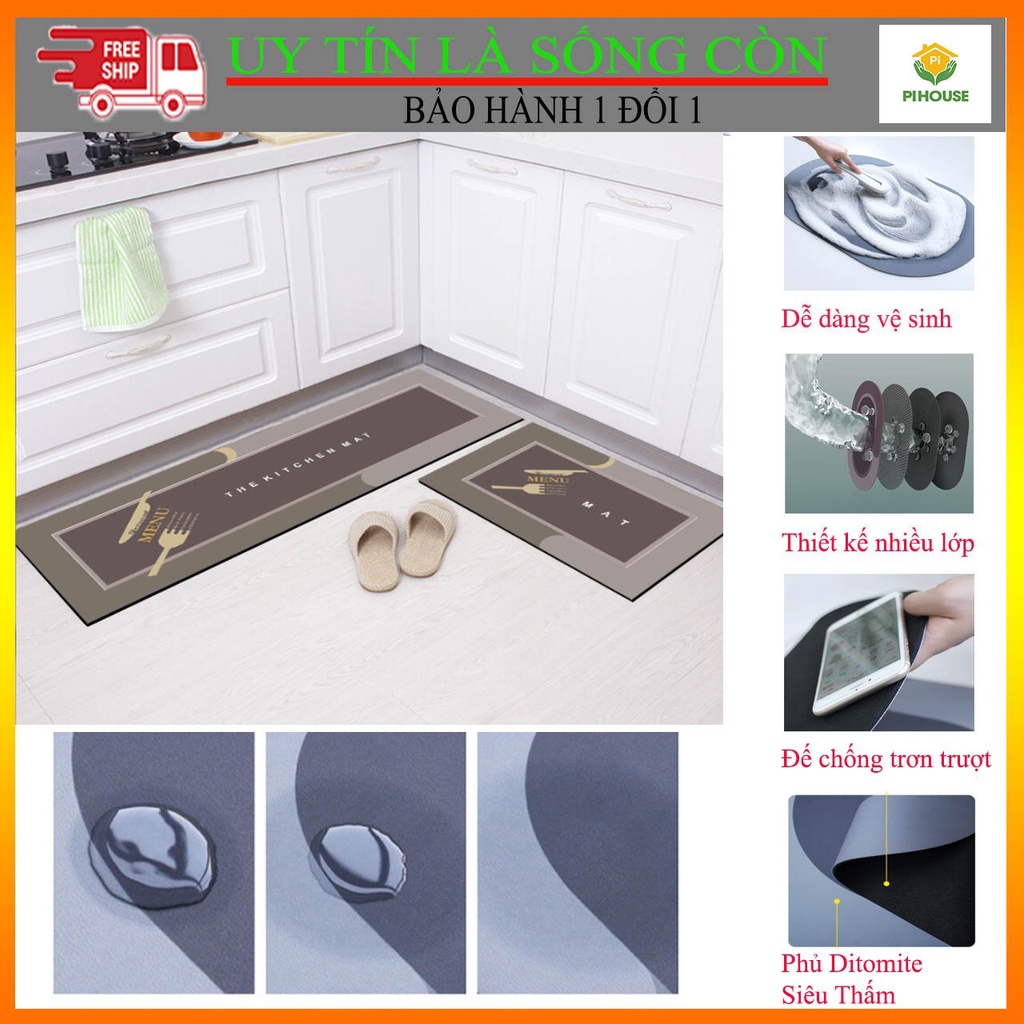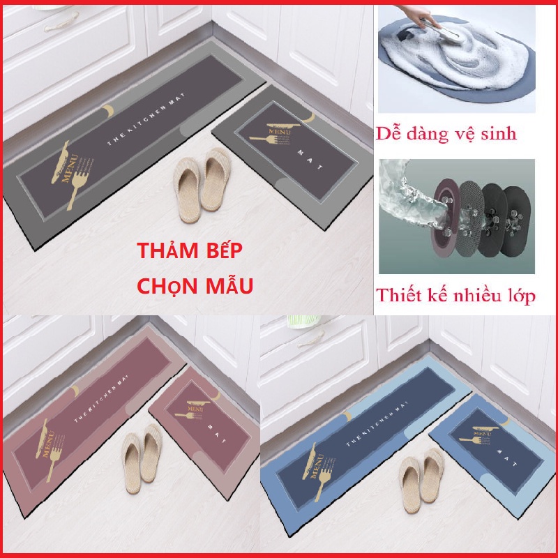 Giới thiệu (FREE SHIP) SÉT THẢM BẾP 4 LỚP CHỐNG TRƠN TRƯỢT SILICON LAU CHÂN SIÊU THẤM HÚT