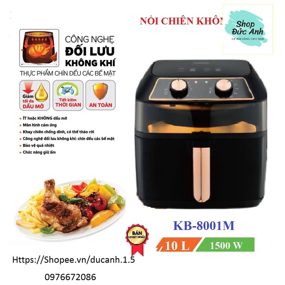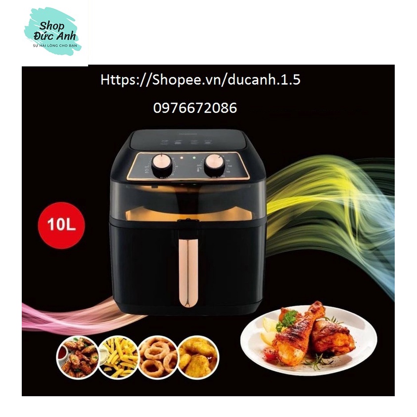 Nồi Chiên Không Dầu, Lò Chiên Không Dầu Nineshield 10 lít, Không Lo Dầu Mỡ, BH 1 NămNỒI CHIÊN KHÔNG DẦU 10 LÍT CÔNG SUẤT 1500W