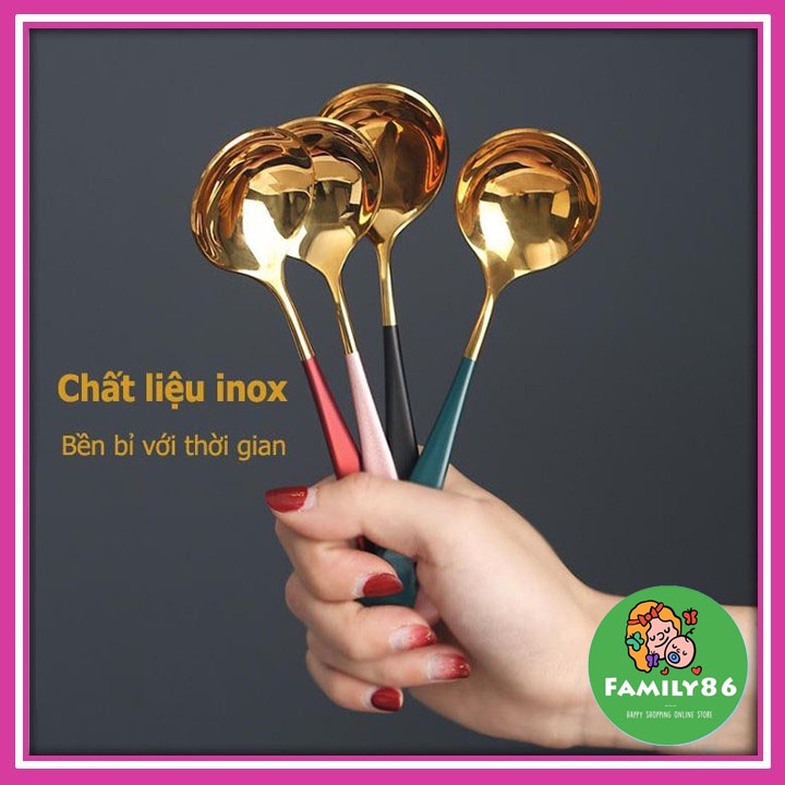 ✔️ Thìa Inox Mạ Vàng Cán Dài Nhiều Màu Với thiết kế tròn, rộng phù hợp khuôn miệng, dễ dàng xúc cơm, soup, cháo...