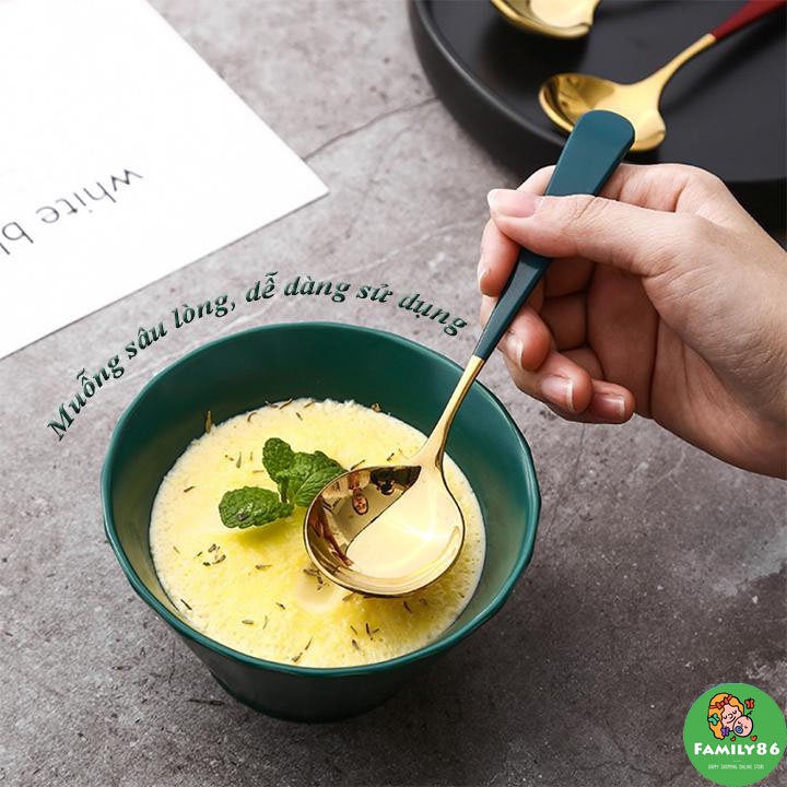 Thìa muỗng Ăn Cơm Bằng Inox Mạ Vàng Cán Dài Nhiều Màu