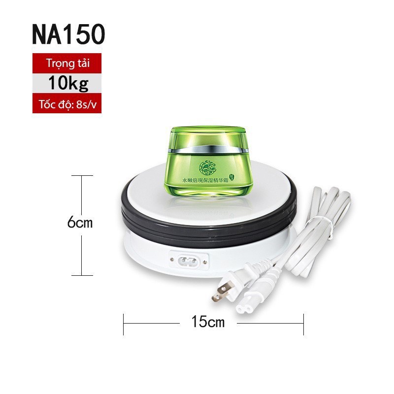 - Với tốc độ quay ổn định, bạn có thể quay từng góc độ, chi tiết của sản phẩm. Tuy kích thước nhỏ gọn, đơn giản nhưng có thể chịu được trọng lượng lớn từ 15kg đến 30kg. Phần đế được thiết kế chống trơn trượt, không lo bị mất cân bằng hay đổ, rơi..