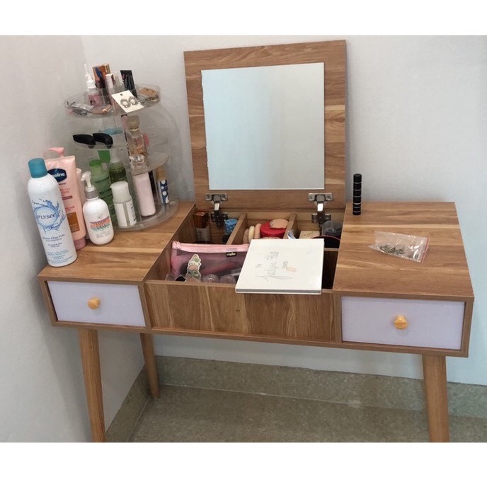 +Mặt trên bạn có thể làm việc còn phần dưới là những khoảng trống giúp bạn cất chứa các phụ kiện trang điểm hoặc những cuốn sách yêu thích của bạn.