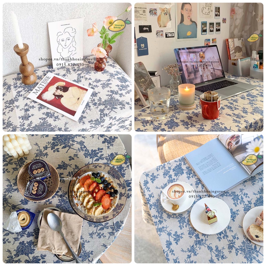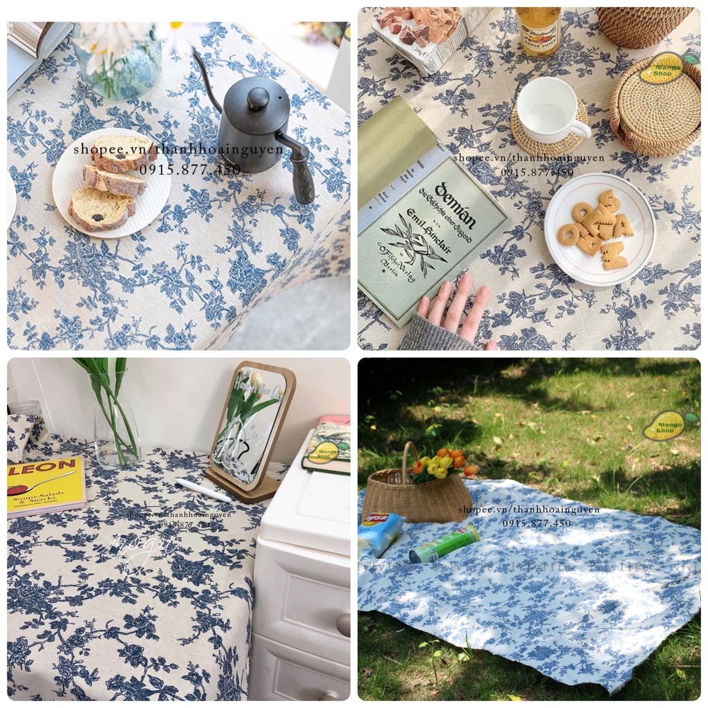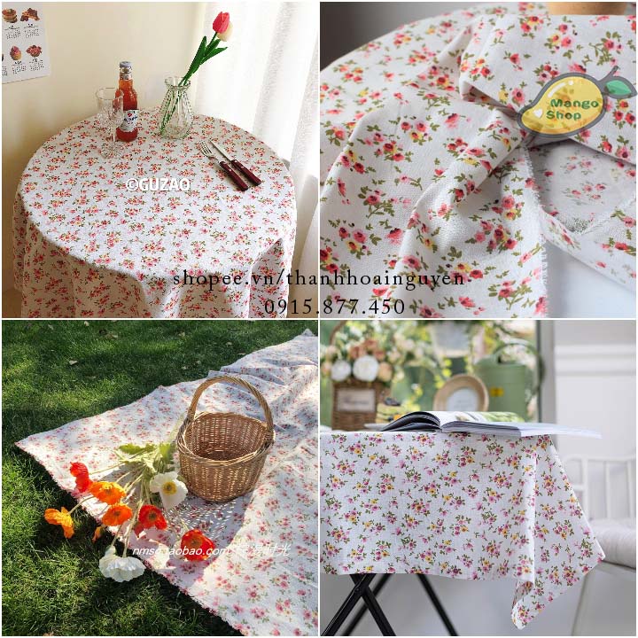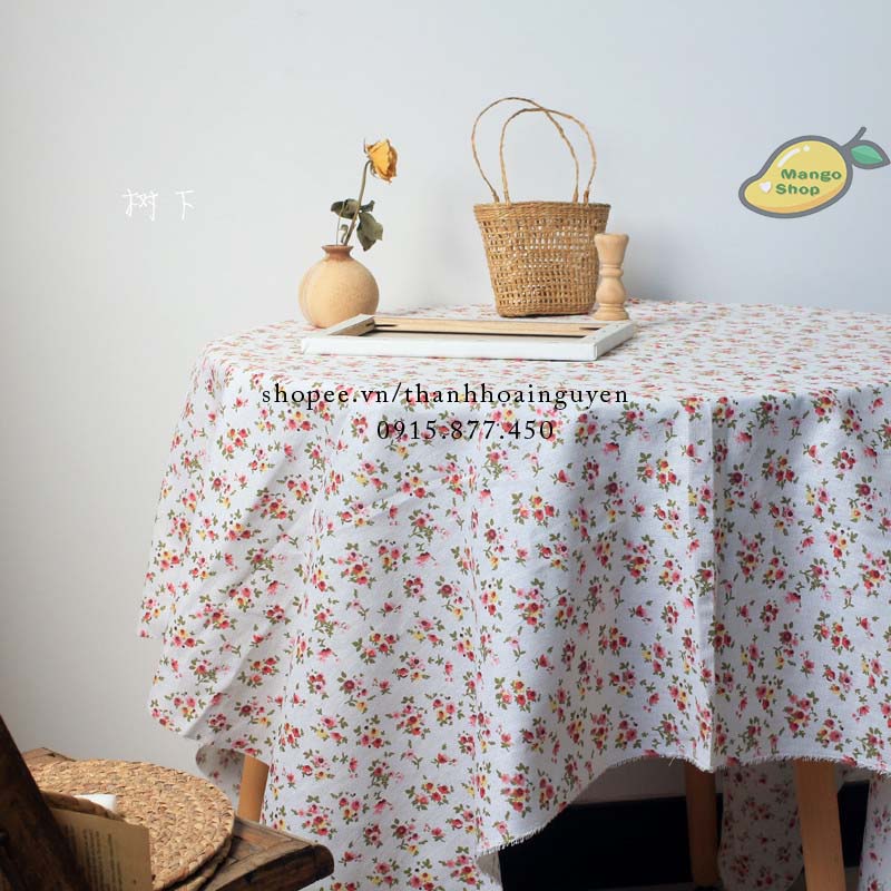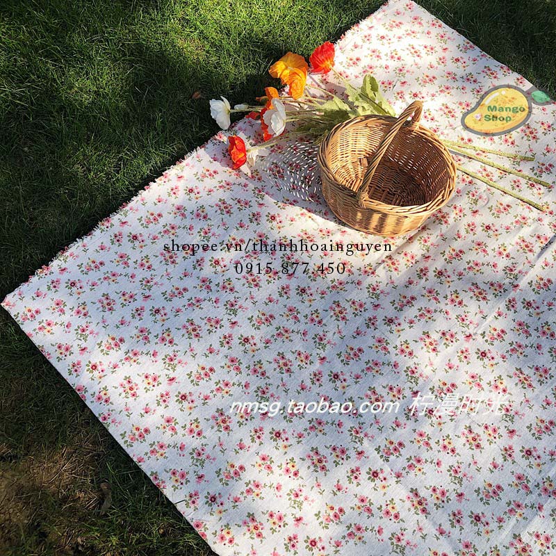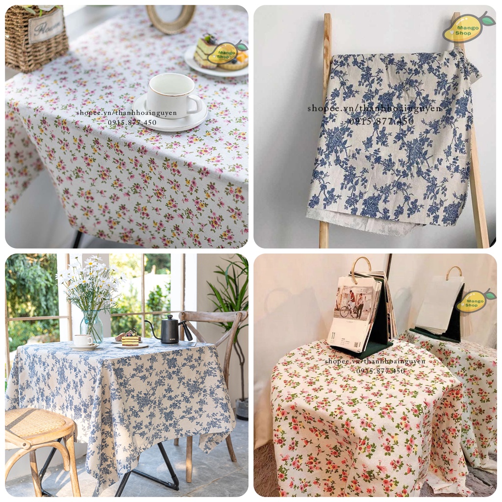Khăn trải bàn hoa nhí vintage ( vải chụp ảnh decor retro không may viền )