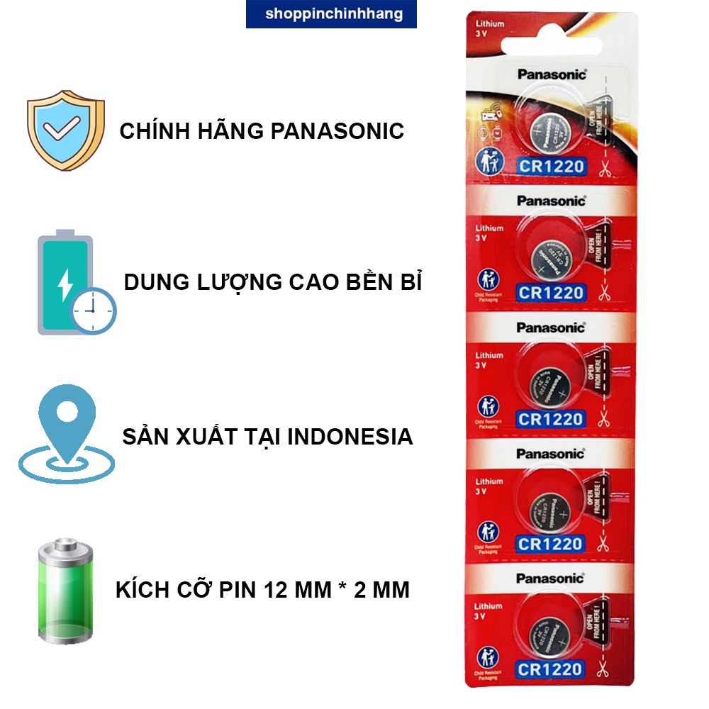 Pin CR1220 Panasonic lithium 3V vỉ 5 viên chính hãngNSX: Panasonic