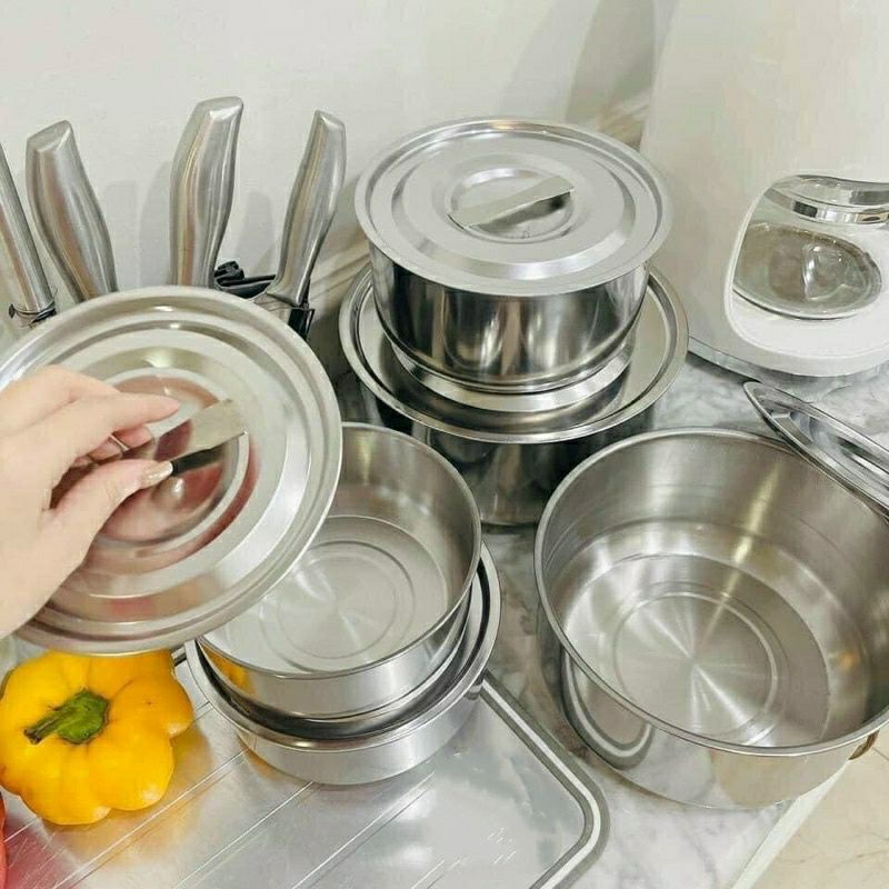 Nhà cửa & Đời sống > Dụng cụ nhà bếp > Nồi || Bộ Nồi Inox 5 Nồi Dùng Bếp Từ, Bếp Gas Đủ Kích Thước Tiện Lợi Không Có QuaiCòn hàng