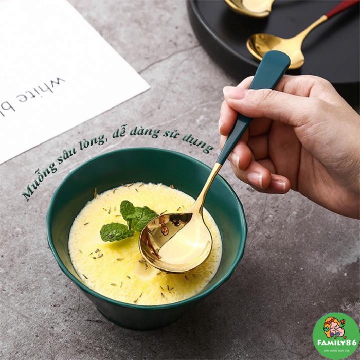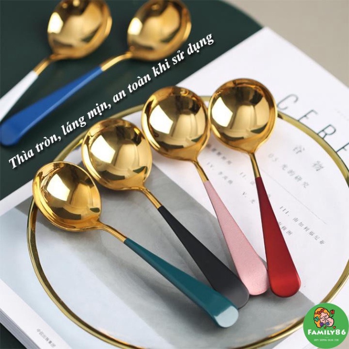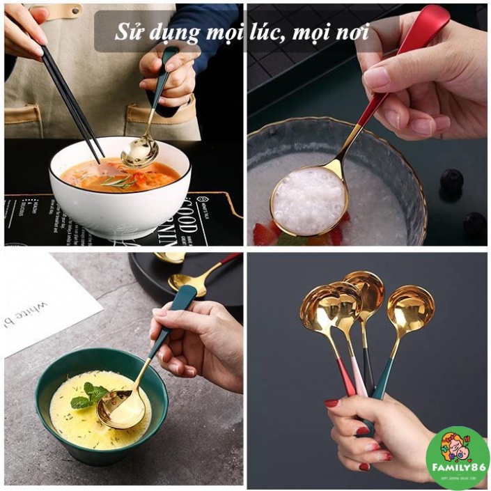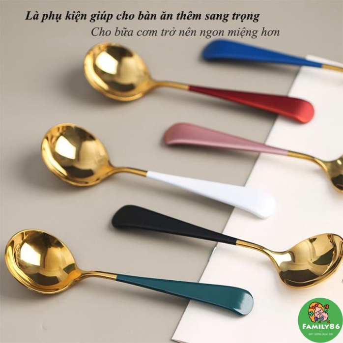 ✔️ Thìa Inox Mạ Vàng Cán Dài Nhiều Màu Với thiết kế tròn, rộng phù hợp khuôn miệng, dễ dàng xúc cơm, soup, cháo...