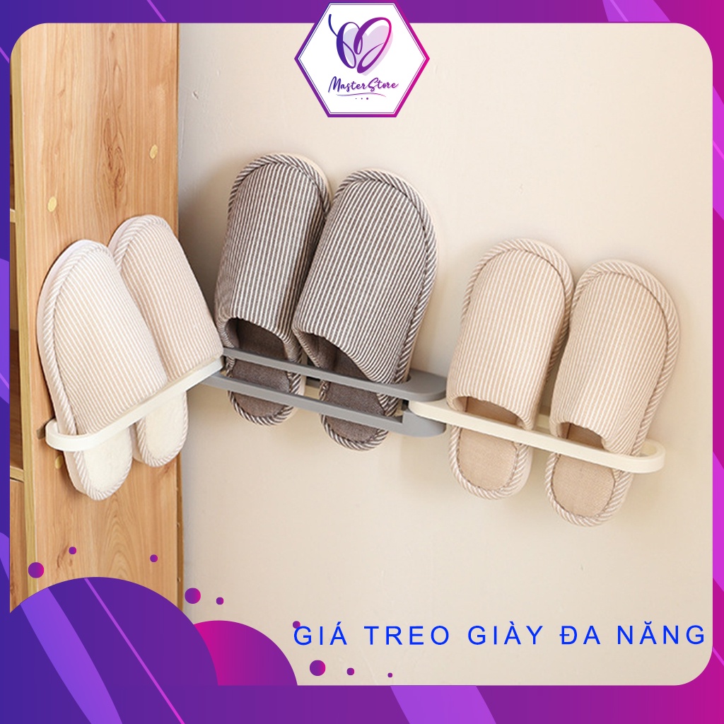Thanh treo dép có thể để được 3 đôi dép, bạn có thể treo thẳng hoặc gấp vuông góc để tiết kiệm không gian (xem video minh họa đầu sản phẩm).