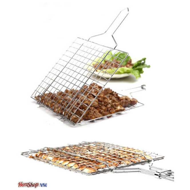 - Vỉ Nướng Hộp Inox Cao Cấp Chống Gỉ Loại Lớn giúp bạn dễ dàng nướng các món thịt nướng , hải sản nướng mà không sợ rơi vãi ra ngoài.