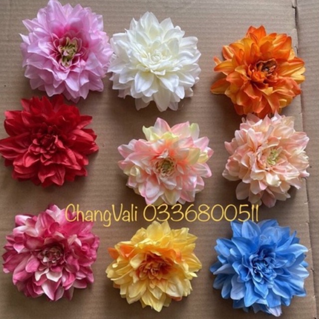 Đầu bông hoa thược dược lụa cao cấp-trang trí,decor ,làm oảnchất liệu lụa cao cấp