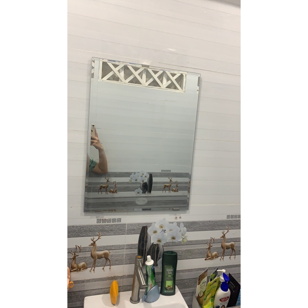 - Gương dày 4li (4mm), được mài vát 4 cạnh, nhìn sang trọng.
