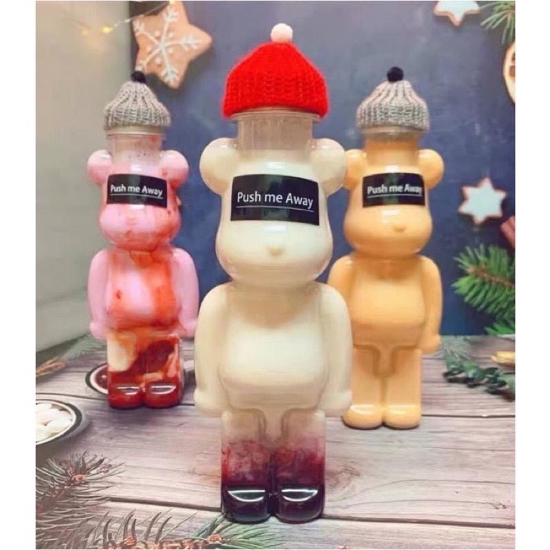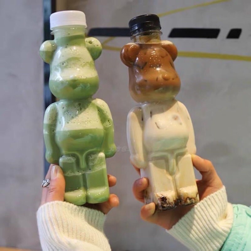 Chai nhựa hình gấu bạo lực Bearbrick, chai nhựa đựng trà sữa