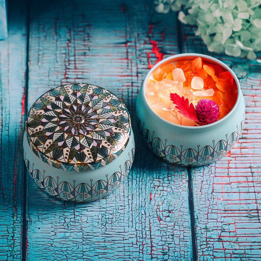 Nến Thơm Hoa Khô Thiên Nhiên, Sáp Thơm Cao Cấp Chính Hãng, Hộp Thiếc Hoa Văn - MTDDT