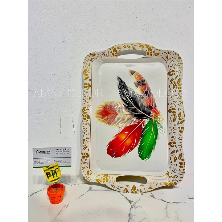 Giới thiệu Khay nhựa đựng đồ cốc chén ly hoa quả bê đồ nhựa phíp chữ nhật có tay cầm họa tiết