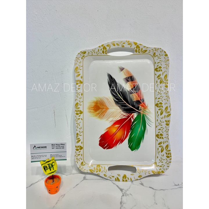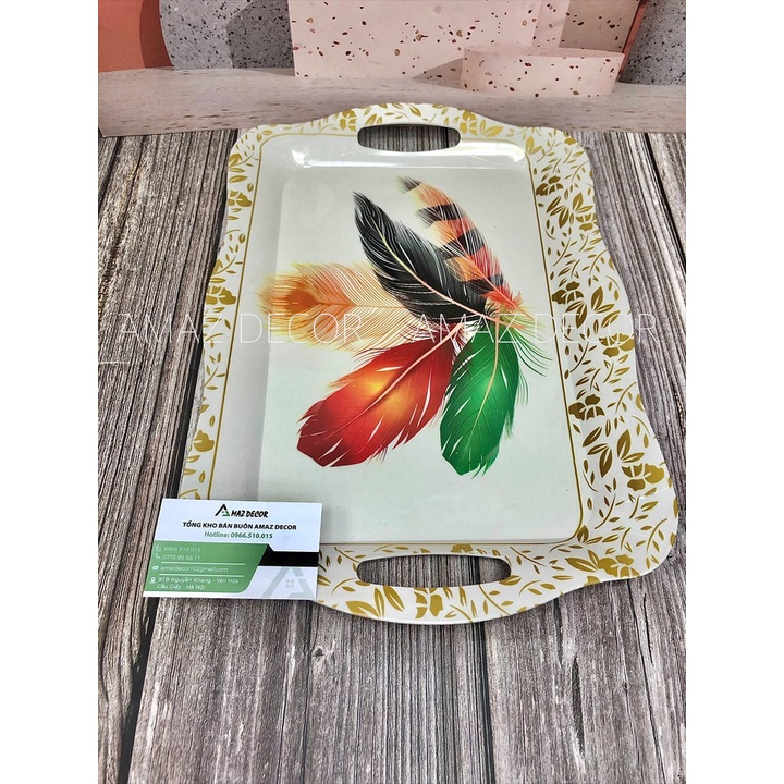 Khay nhựa đựng đồ cốc chén ly hoa quả bê đồ nhựa phíp chữ nhật có tay cầm họa tiết