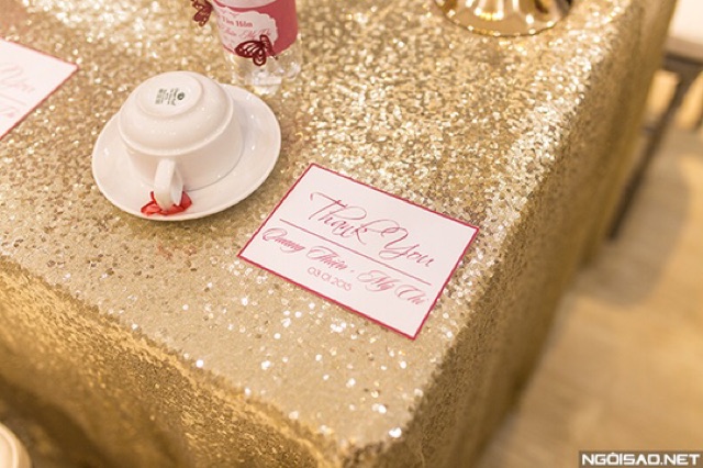 •Khăn trải bàn kim sa với các hạt kim tuyến lấp lánh