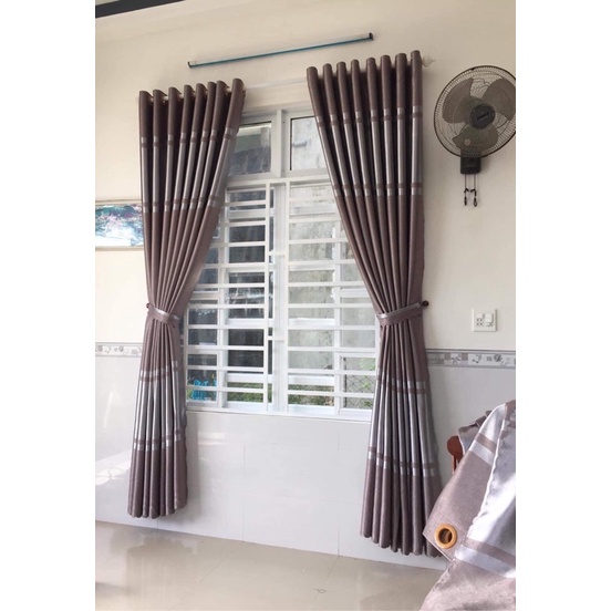 Rèm có 2 mặt: 1 mặt xám bạc kẻ nâu. mặt còn lại là nâu xám bạc.•Nhận cắt và bán rèm theo yêu cầu khách hàng