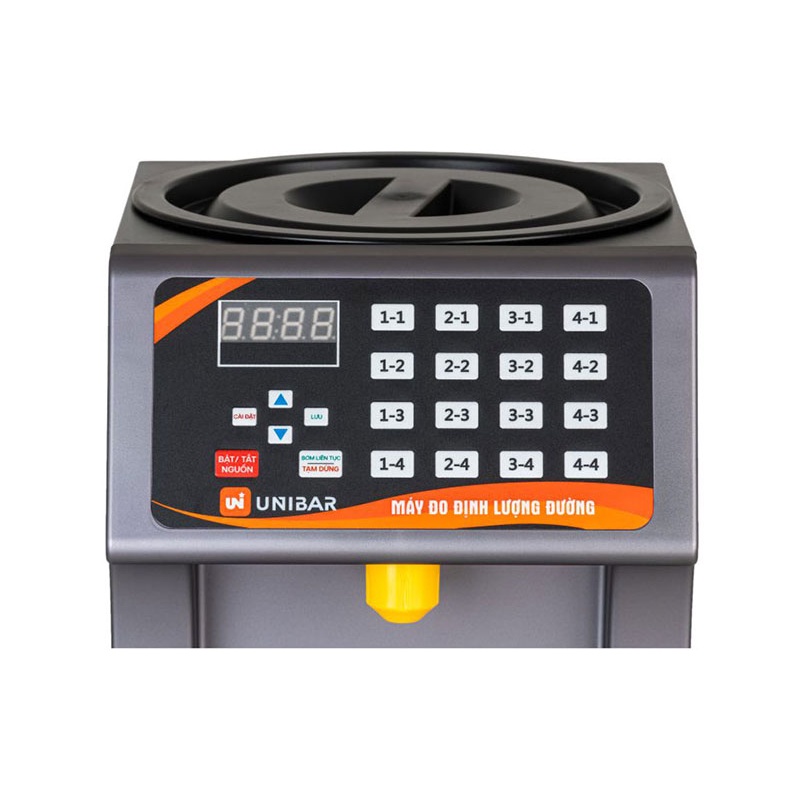 MÁY ĐO ĐỊNH LƯỢNG ĐƯỜNG UNIBARMáy đo định lượng đường Unibar UB-16 là thiết bị dùng để đong lượng đường nước thông qua cơ chế được cài đặt sẵn trong máy. Đây là sản phẩm không thể thiếu tại các quán trà sữa, cà phê, giải khát,…bởi máy giúp rút ngắn thời gian pha chế, cho ra lượng đường chính xác, từ đó giúp cho từng ly đồ uống luôn giữ được chất lượng tốt nhờ pha chế đúng công thức.