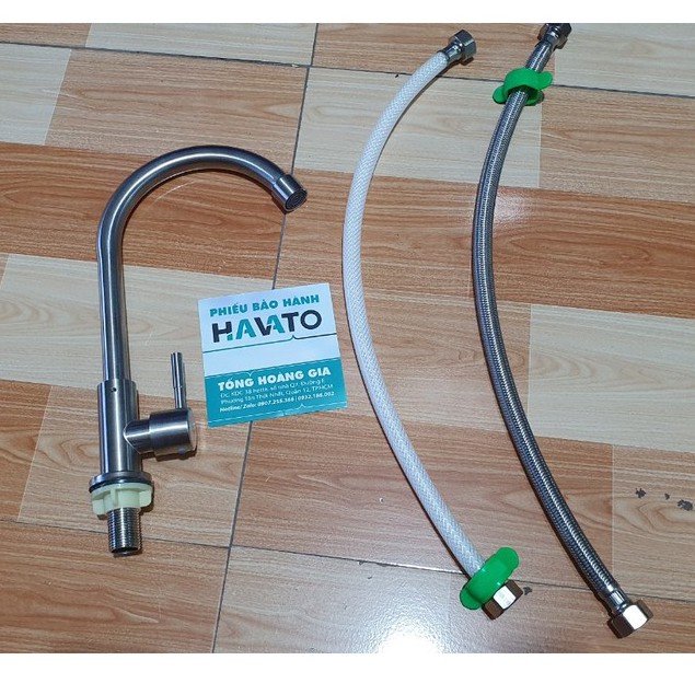 - Chân vòi được làm bằng Inox với bát gắn bằng nhựa cùng roong cao su chắc chắn.