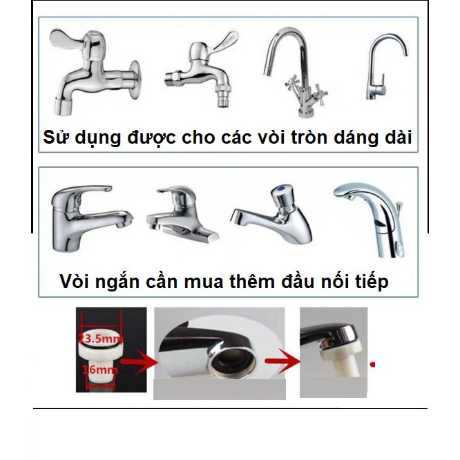 - Dùng được cho cả vòi nóng và vòi lạnh ( nước nóng không quá 60 độ)