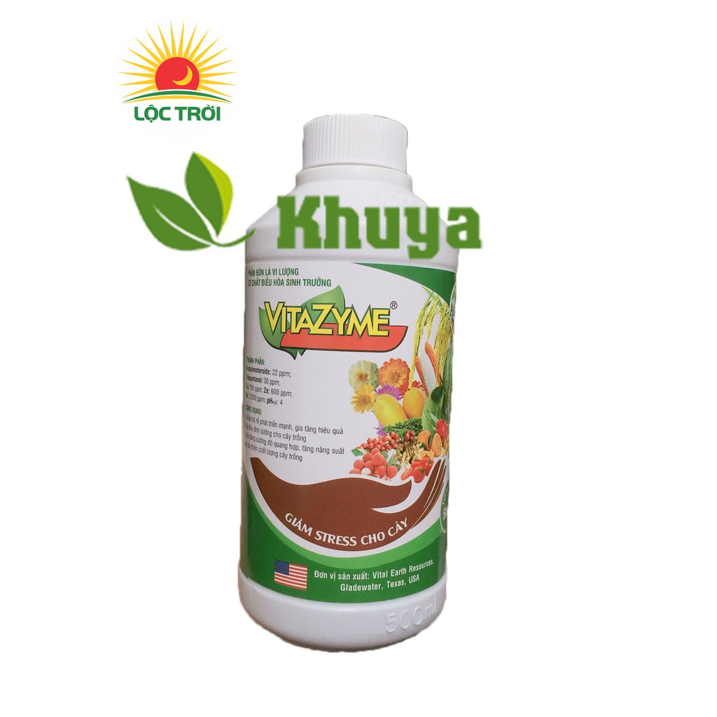 Phân bón lá vi lượng Vitazyme chính hãng Lộc Trời 500mlVitazyme là sản phẩm có nguồn gốc từ Mỹ ,được lên men từ cây cỏ tự nhiên sản phẩm chứa hai hoạt chất chính Brassinosteroids