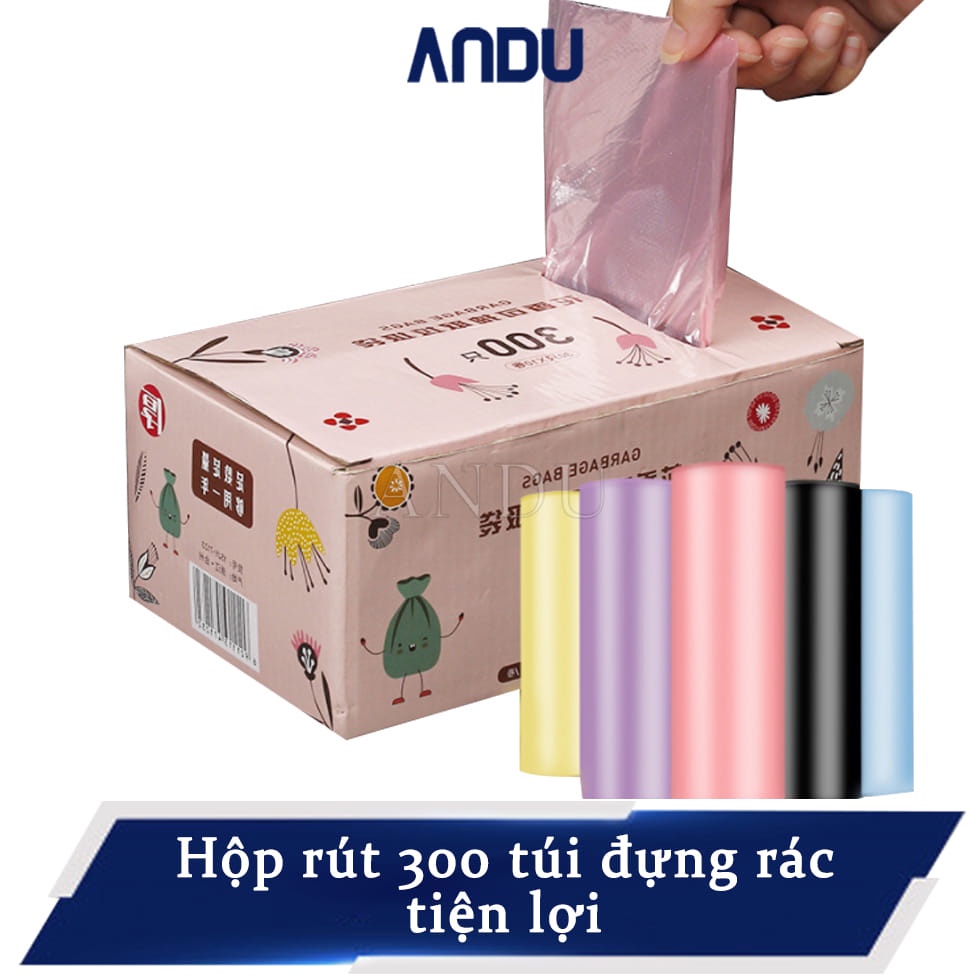 HỘP 10 CUỘN TÚI ĐỰNG RÁC 300 CÁI TỰ PHÂN HUỶ NHIỀU MÀU SẮC SIÊU DAI👉 👉 hộp 300 túi rác đủ màu