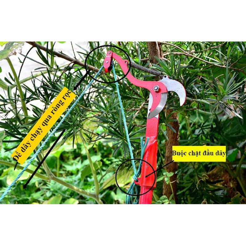 Sử dụng : Lắp thêm sào tre nứa hoặc sào chuyên dụng để có thể đưa dụng cụ lên cao để dùng kéo tỉa cành,cắt hoa quả Lưu ý: sản phẩm không bao gồm gậy (sào)