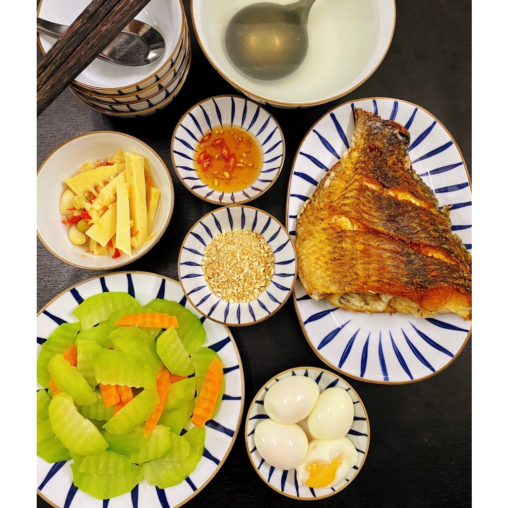 Set Bát Đĩa Sứ 15 Sản Phẩm - Họa Tiết Kẻ (Có Bán Lẻ Từng Sản Phẩm)