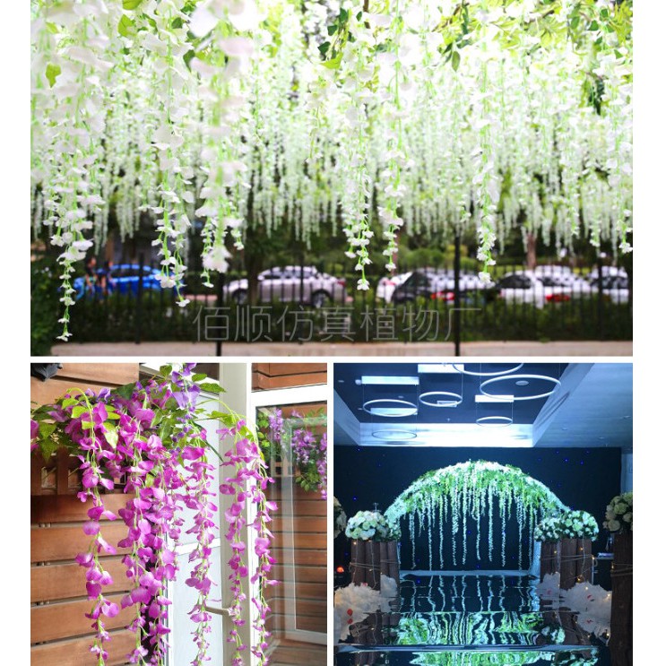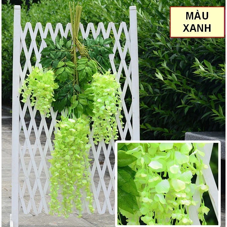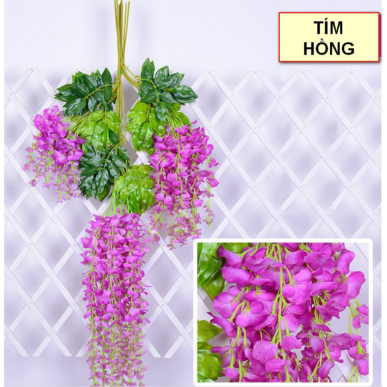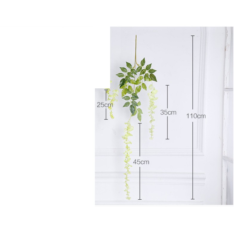 - Hoa dây rũ trang trí trong nhiều lĩnh vực, thiết kế tiệc, không gian quán, nhà ở mang phong cách trang nhã, lãng mạn..- 1 nhánh có chiều dài 110cm, 1 nhánh gồm ba dây hoa và lá