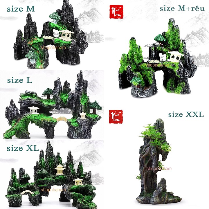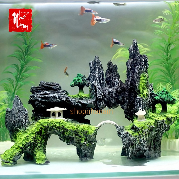 Mô hình núi đá hòn non bộ giả sơn trang trí bể cá lũa bể cá thủy sinh