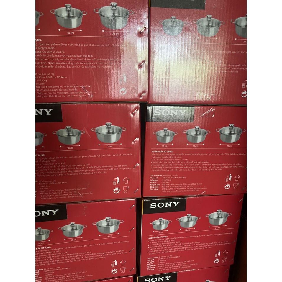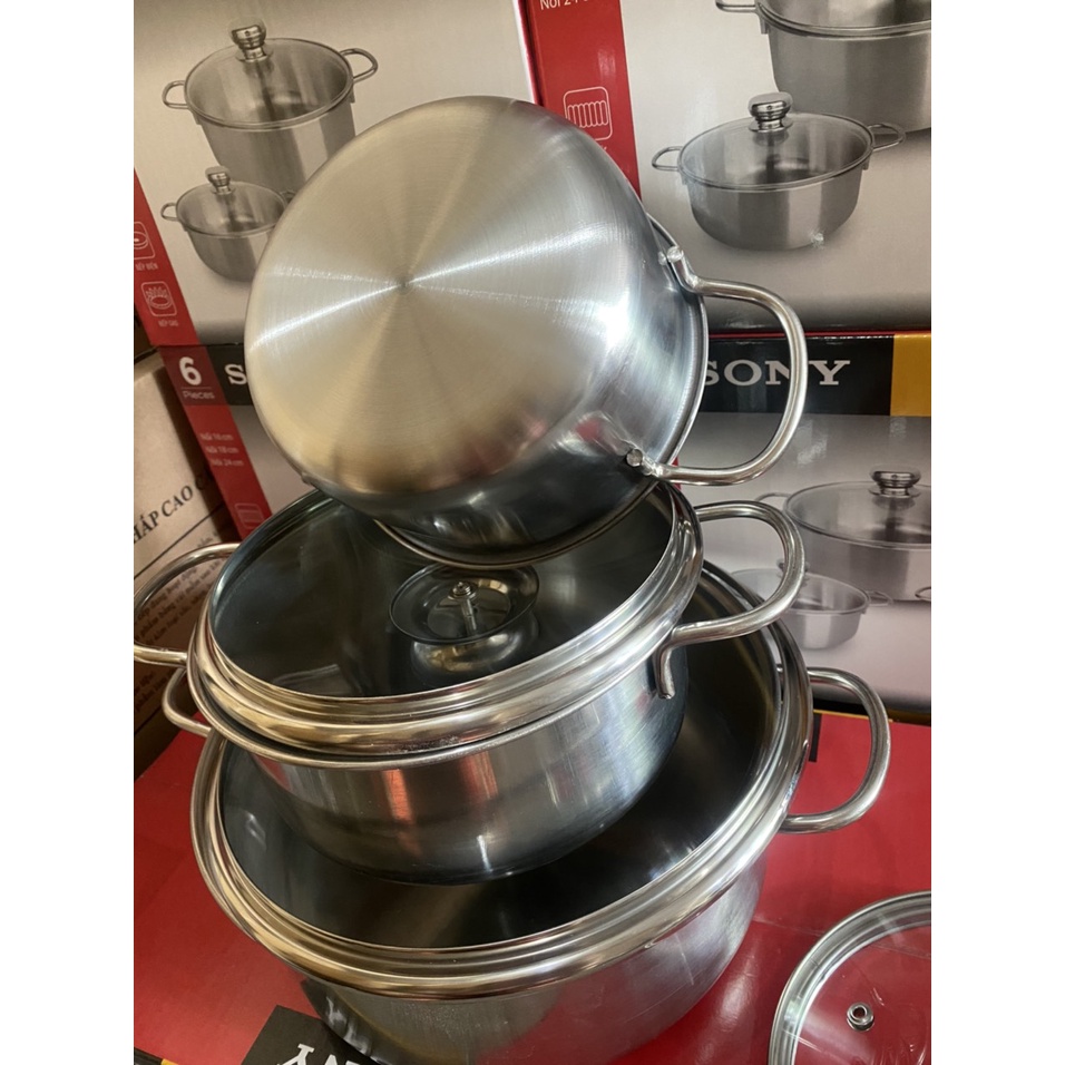 BỘ NỒI INOX 3 MÓN NẮP KÍNH - Quà tặng SONY