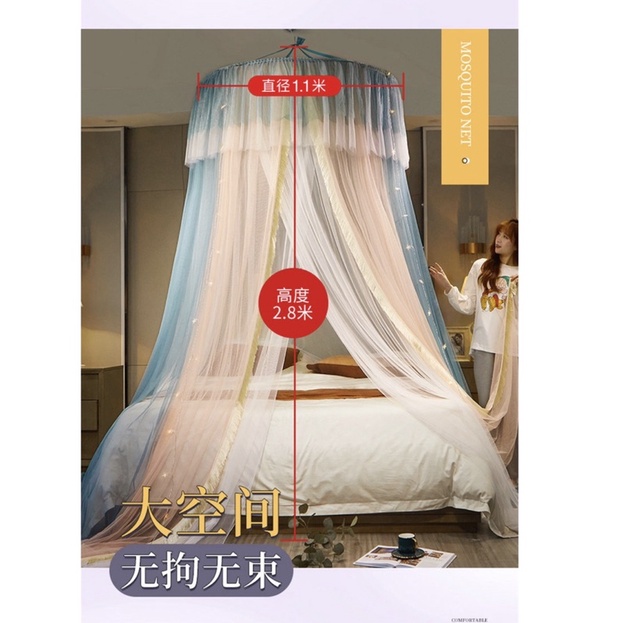 Nhà cửa & Đời sống > Chăn ga gối nệm > Mùng/ Màn chống muỗi || Màn mùng treo trần không khoan tường phong cách Công chúa Hoàng gia khung tròn 1m1Còn hàng