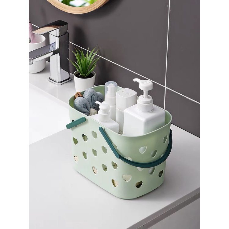 Nhà cửa & Đời sống > Trang trí nhà cửa > Khác || Giỏ nhựa đựng đồ mỹ phẩm có quai xách dễ thương, rổ đựng mỹ phẩm màu pastel cực xinhCòn hàng