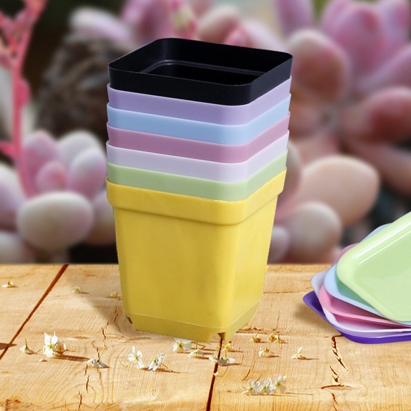 Combo 10 Chậu nhựa trồng sen đá, xương rồng (Chọn màu) - 7x7cm - Mỏng - Dẻo