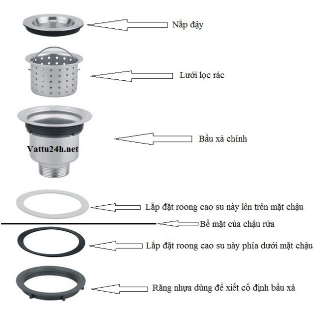 Bầu xả inox gắn vào chậu rửa chén các loại, không gỉ sét, dễ dàng vệ sinh, tháo lắpSử dụng phù hợp với hầu hết các loại chậu rửa chén trên thị trường