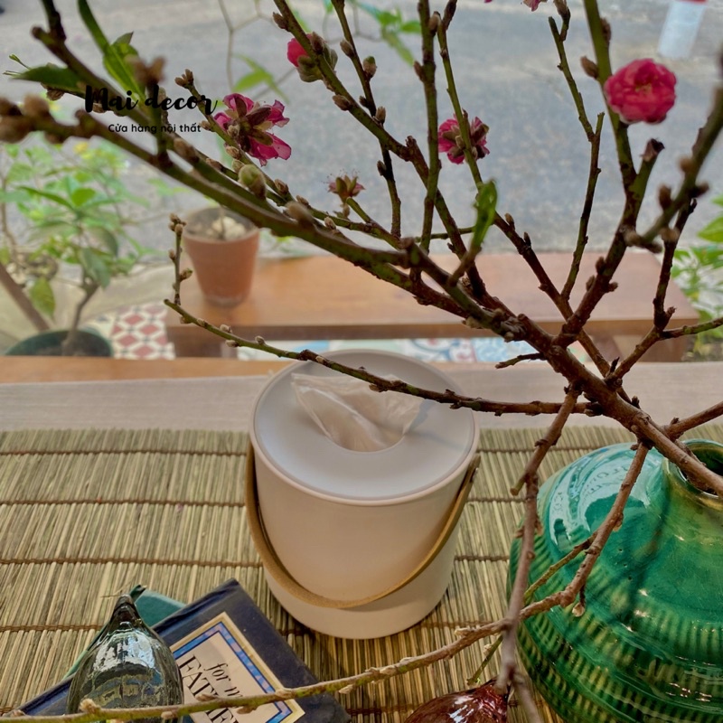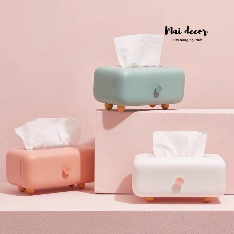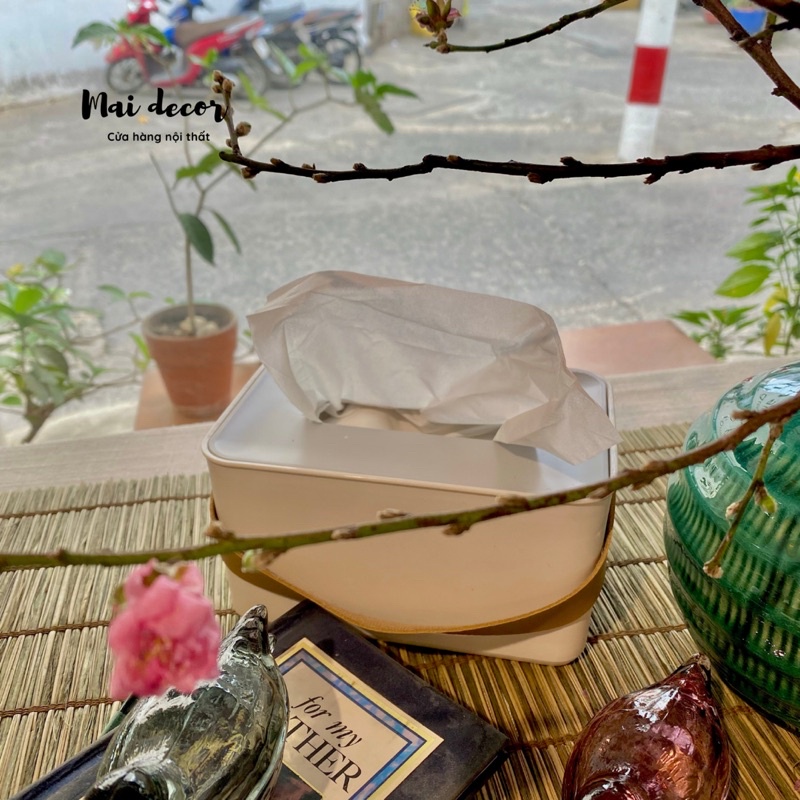 Hộp đựng khăn giấy chân gỗ, quai da tiện lợi dễ thươngCó gia đình nào sử dụng khăn giấy siêu cấp nhiều như nhà MAI không ạ? Mỗi lần mình thường mua 1 lốc 5,6 bịch khăn giấy để dùng cho cả nhà bếp, phòng ngủ và phòng tắm, phòng khách. Khăn giấy nghe cảm giác chả có gì to tát, cũng chẳng đáng bao nhiêu, nhưng nhìn đi nhìn lại thì ở đâu mình cũng xài cả, mà để bịch nilong khắp nơi nó lại xấu mất cả căn nhà mình mất công decor. Vậy là lại loay hoay tìm cái hộp đựng khăn giấy để trông cho gọn gàng nhà cửa.