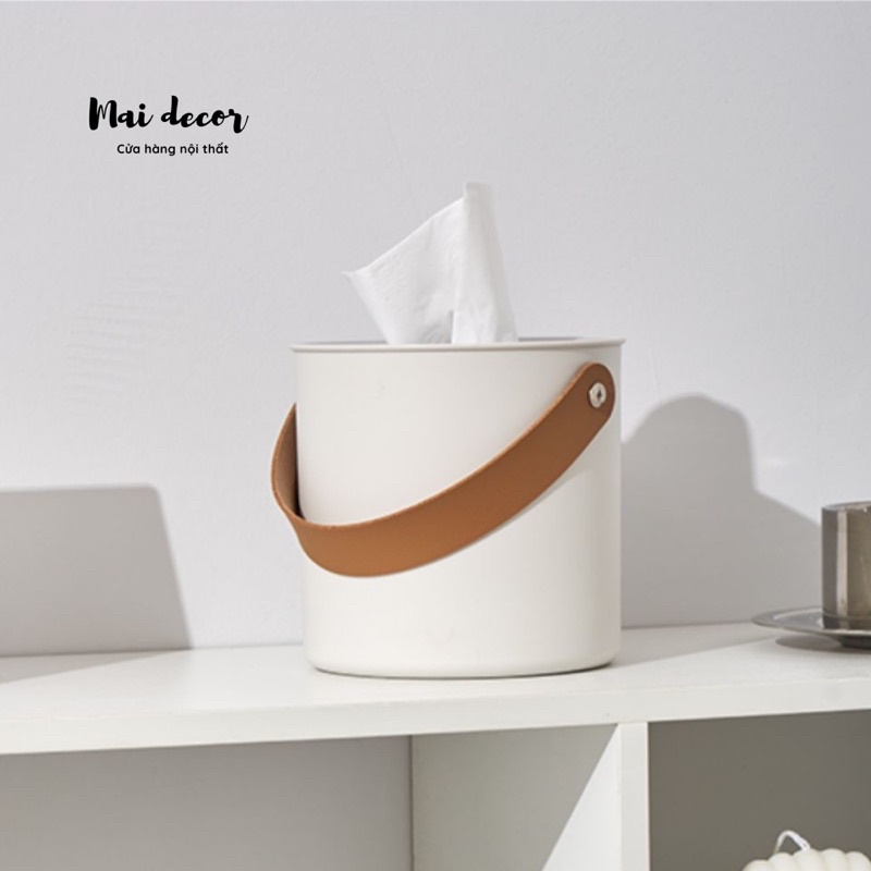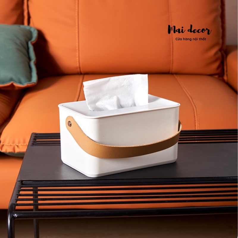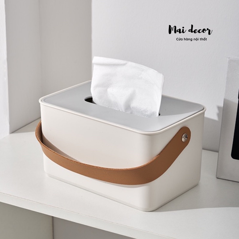 Nhà cửa & Đời sống > Sắp xếp nhà cửa > Hộp khăn giấy || Hộp đựng khăn giấy chân gỗ, quai da tiện lợi dễ thươngCòn hàng