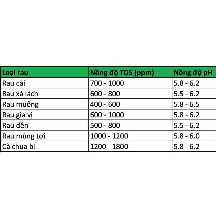 Các bạn xem hình cuối là bảng liều lượng dung dịch tham khảo để có thể pha cho một số loại rau phổ biến.